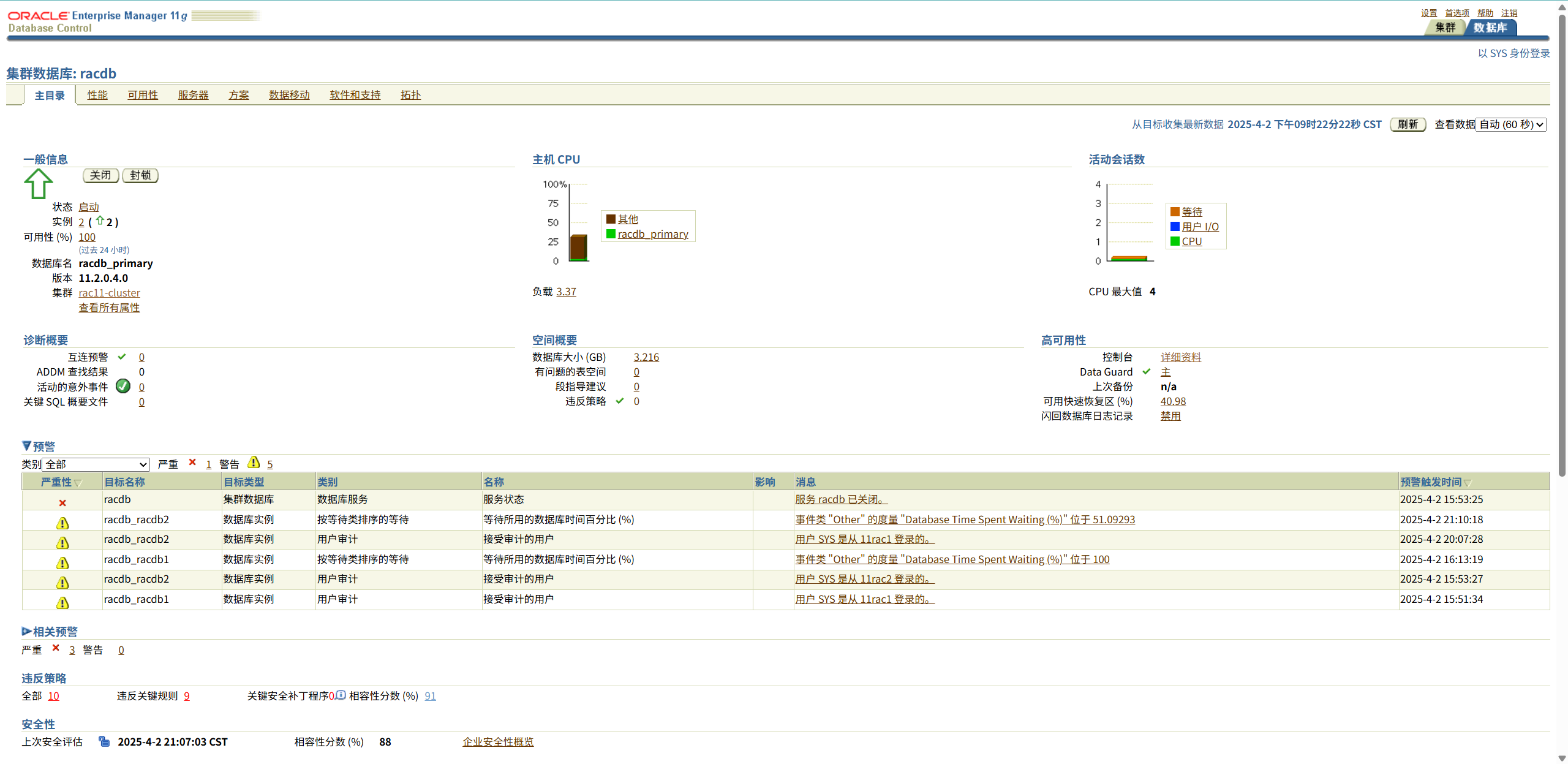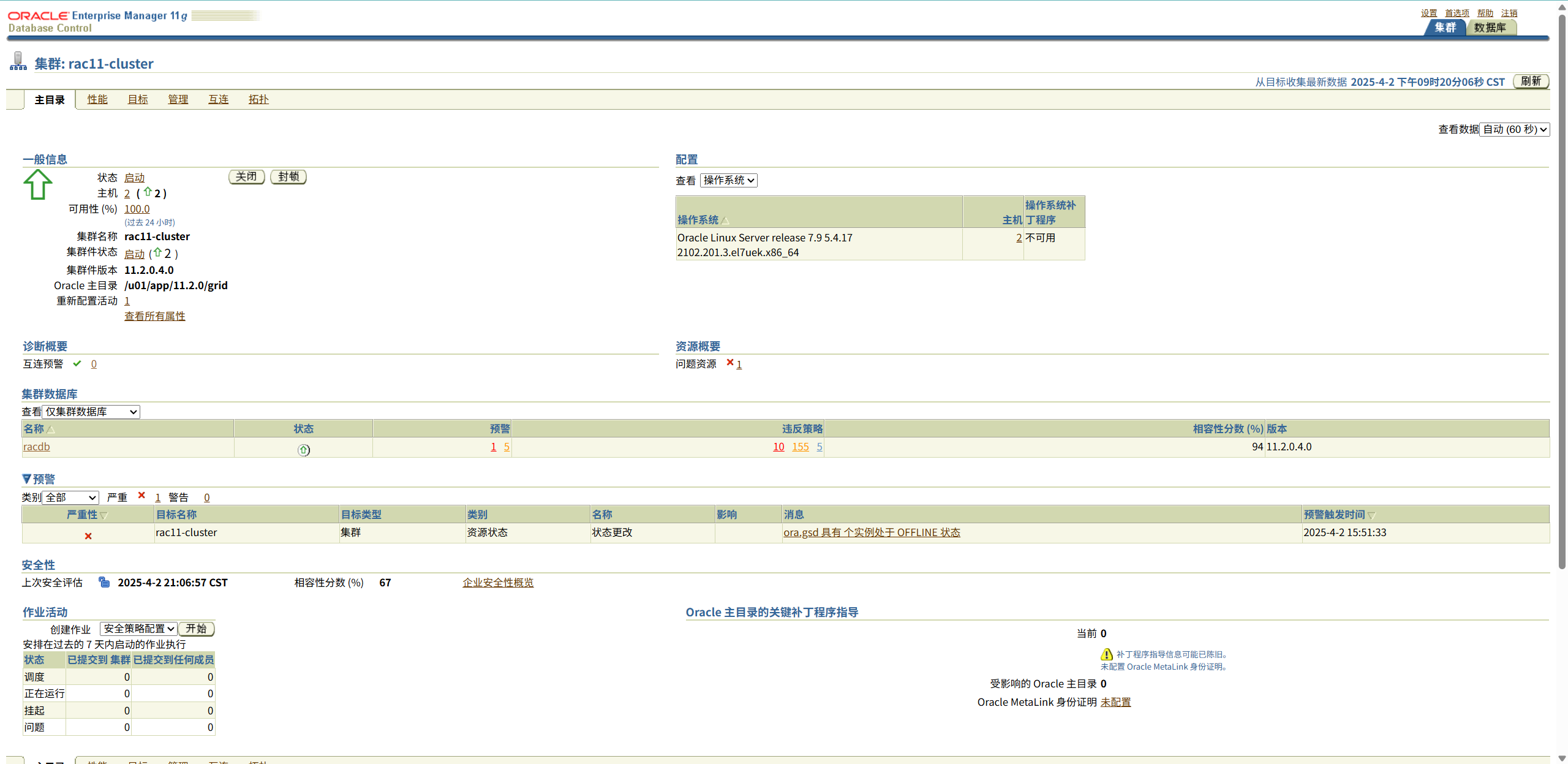 - 访问 - 注意:建议适用节点IP进行访问,因为如果适用SCAN-IP或VIP,可能会被切换到没有运行em的节点上。 - 1 - https://node-ip:1158 - 如下所示: ![]() ![]() ![]()